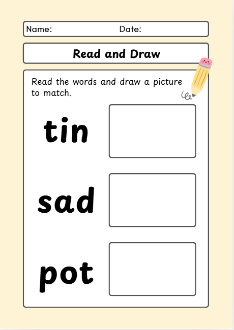 5 Amazing read and draw phonics worksheets combine literacy and creativity for preschool and kindergarten students! Brainy Sheets Online’s engaging activities help young learners practice reading simple words while developing drawing skills through interactive exercises designed specifically for early readers.